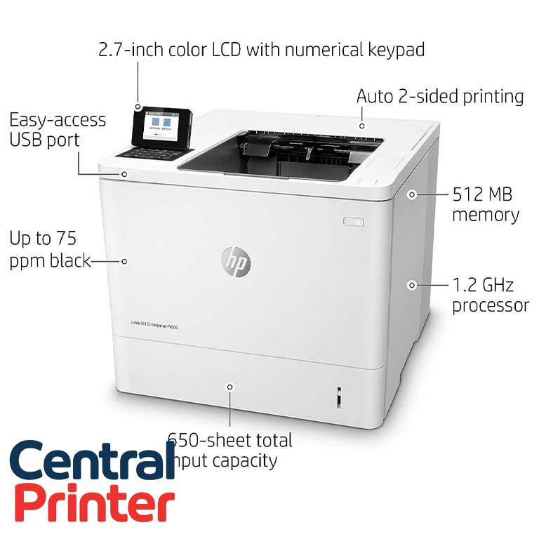 پرینتر M609dnساخت شرکت hp یکی از محصولات کاربردی این شرکت است که به صورت تک کاره عمل میکند. این محصول با ظرفیت 100+550 برگی سینی ورودی خود برای استفادههای خانگی یا اداری مناسب است. البته برای خرید این دستگاه برای استفادههای خانگی بهتر است حجم کاری بالایی داشته باشید. این مدل دارای توان مصرفی 780 وات در چاپ، 15.3 وات در حالت آماده و 3.1 وات در حالت خواب بوده و صدای تولید شده در حالت پرینت برابر 56dBA است. این مدل از پرینترهای لیزری اچ پی اگرچه قادر چاپ بهصورت رنگی نیستند اما همچنان لیزری بوده و برای چاپ متن و اسناد طراحی شده است. بااینحال میتوانید با استفاده از این پرینترهای لیزری به چاپ حداکثر 71 صفحه در دقیقه بپردازید. همچنین مدل M609dn ساخت صفحه نمایش 2.7 اینچی رنگی با قابلیت تغییر زاویه دارد و برای اتصال به کامپیوتر پورتهایUSB 2.0 و Ethernet بر روی آن تعبیه شدهاند. گفتنی است، یکی از قابلیتهای برجستهی این پرینتر، چاپ دورو است که برای چاپ مدارک نیازی به جابهجایی کاغد به صورت دستی نخواهید داشت.
